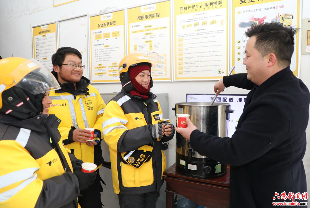近日,六安迎来寒流降温天气,市总工会依托市区工会驿站,通过六安城区网约配送行业联合工会等新业态行业工会,积极组织为环卫工人、外卖员、快递员等户外劳动者提供免费爱心热茶等关怀活动,为奔波在外的户外劳动者们送上一份不期而遇的温暖。截至目前,市区已建成工会驿站300余家,通过开展理论宣讲、健康义诊、“夏送清凉”、“冬送温暖”等各类活动累计服务户外劳动者40万人次,逐渐成为小城的“温情地标”。(记者 邱杨 王丽 文/图)