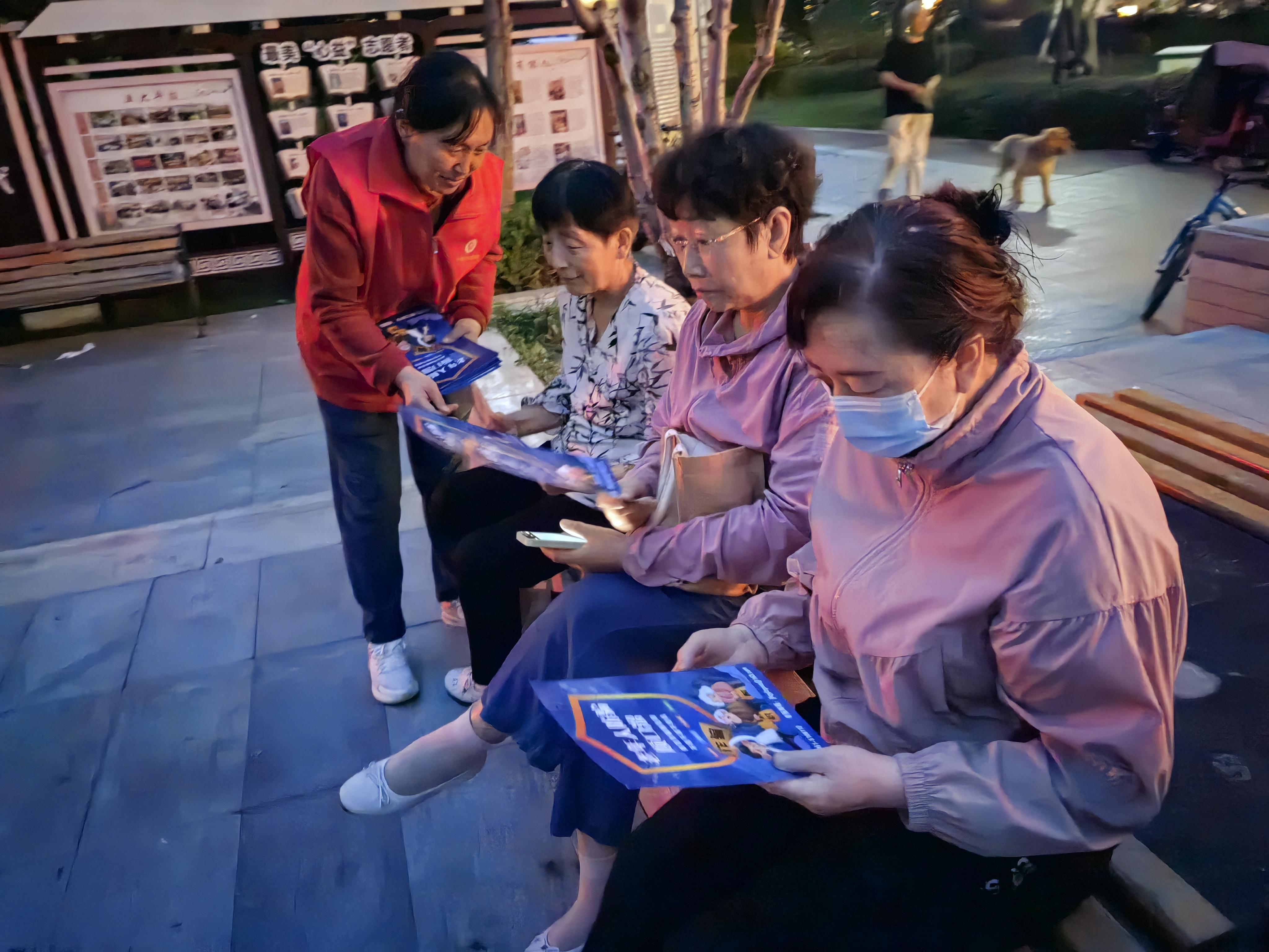 电影放映期间,社区志愿者向前来观影的居民发放反诈、禁毒宣传彩页,并结合各类新型电信网络诈骗案例,耐心向居民讲解电信网络诈骗的作案手段和特点,引导辖区居民,尤其是老年人提高警惕,强化个人防诈意识。