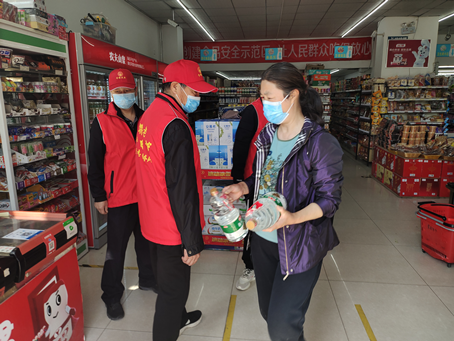 2022年4月19日,澜悦社区“橄榄绿志愿服务队”门店日常巡查。资料图(果园街道澜悦社区供图)