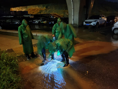 2021年7月12日,澜悦社区“橄榄绿志愿服务队”参与防汛工作。资料图(果园街道澜悦社区供图)