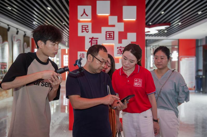 7月24日,游客正在参观湖北省荆门市东宝区非物质beplay官网app 遗产展示馆。新华网 钟奕 摄