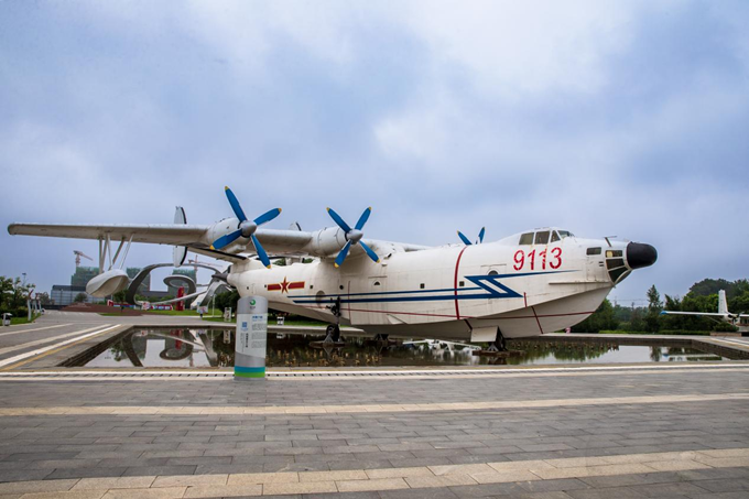 7月24日,湖北省荆门市极客公园内停放的水上飞机。新华网 钟奕 摄