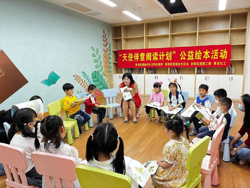 2023年4月15日,厦门市海沧区新阳街道在新阳街道新时代文明实践所举办天使伴童阅读助学活动。(地方媒体供图)