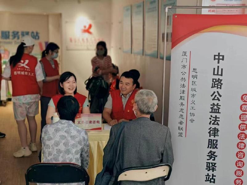 2023年4月29日,厦门市思明区法律援助志愿者在中山路公益法律服务驿站开展法律咨询志愿服务。(地方媒体供图)
