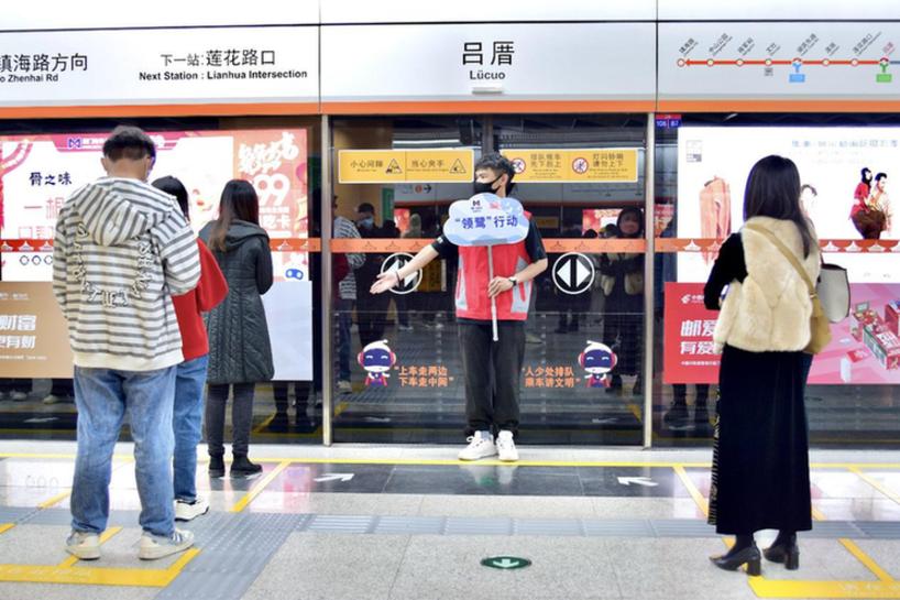 2023年3月7日,厦门轨道交通集团志愿者在吕厝站开展“领鹭行动”文明引导志愿服务活动。(地方媒体供图)