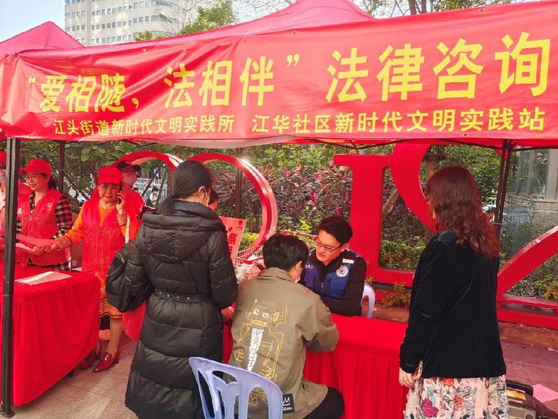 2023年2月2日,厦门市湖里区江华社区开展“爱相随,法相伴”法律咨询活动。(地方媒体供图)