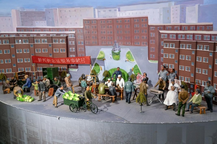 9月27日,在天津市和平区朝阳里社区志愿服务展馆拍摄的新兴街(朝阳里社区)志愿服务奉献日泥塑,再现1989年志愿服务场景。新华网 钟奕 摄