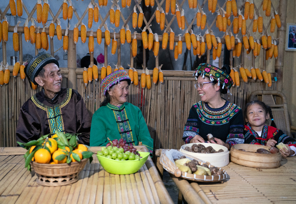 暮秋的南宁,温暖湿润,桂树飘香,我们拜访了蓝连青一家,他们身着少数民族特色服饰,见到我们时唱起了动听的瑶山歌。蓝连青80多岁的公公婆婆身体硬朗,二女儿温柔娴静,6岁多的外孙女活泼可爱。四世同堂,其乐融融,最美好的生活莫过于此。