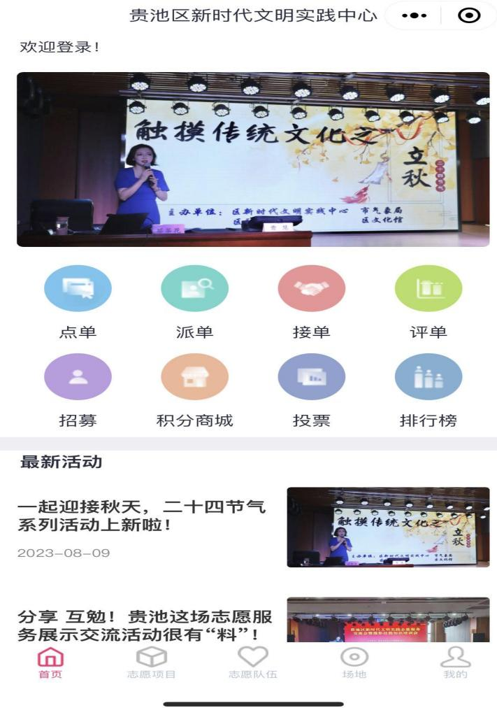 新时代文明实践中心主体力量是志愿者,志愿服务是建强文明实践的重要抓手。贵池区积极探索新时代文明实践志愿服务新模式,开发“贵在实践”微信小程序,打造集志愿者招募、群众点单、派单、接单、评单以及活动发布、志愿者礼遇、场所预约等功能为一体的快捷、便利、智慧化的云平台,实现“文明实践+志愿服务+互联网”工作模式。针对群众反映的共性需求和普遍性问题,形成项目清单,实现中心制单、群众点单、志愿接单、社会评单的有效机制,满足新时代文明实践工作的多元化需求。聚焦基层群众需求,定期开展“我们的节日”、送戏下乡、四季村晚、戏曲票友大赛等文艺汇演活动,今年以来,全区开展各类新时代文明实践活动1.2万余场次,服务群众约36.2万人次。