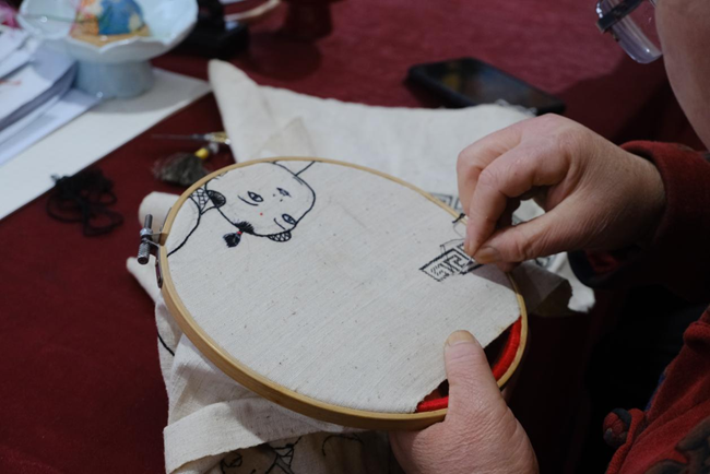 2023年11月20日,汉中市城固县绣娘在进行架花绣品创作。新华网发(吕媛媛 摄)