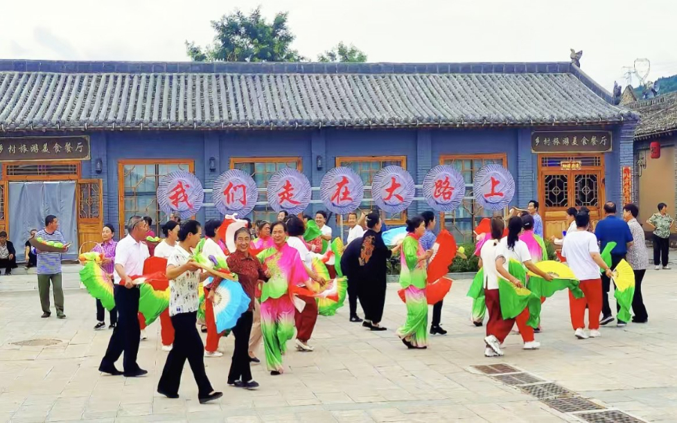 8月8日,宋家沟村正在演出乡村小剧场年代秀《我们走在大路上》。新华网发(忻州市广播电视台 王鹏宇 摄)