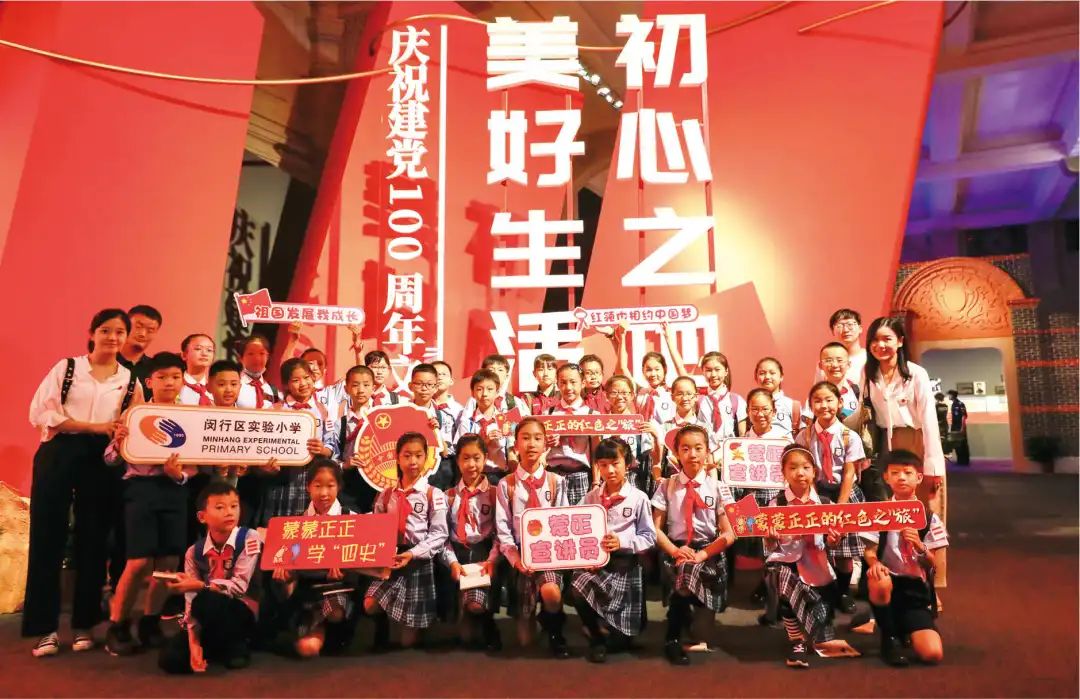 闵行区实验小学团青带领少先队员代表来到上海历史博物馆,参观“初心之地、美好生活”主题展,重温革命先辈英雄事迹,在革命博物馆里学党史