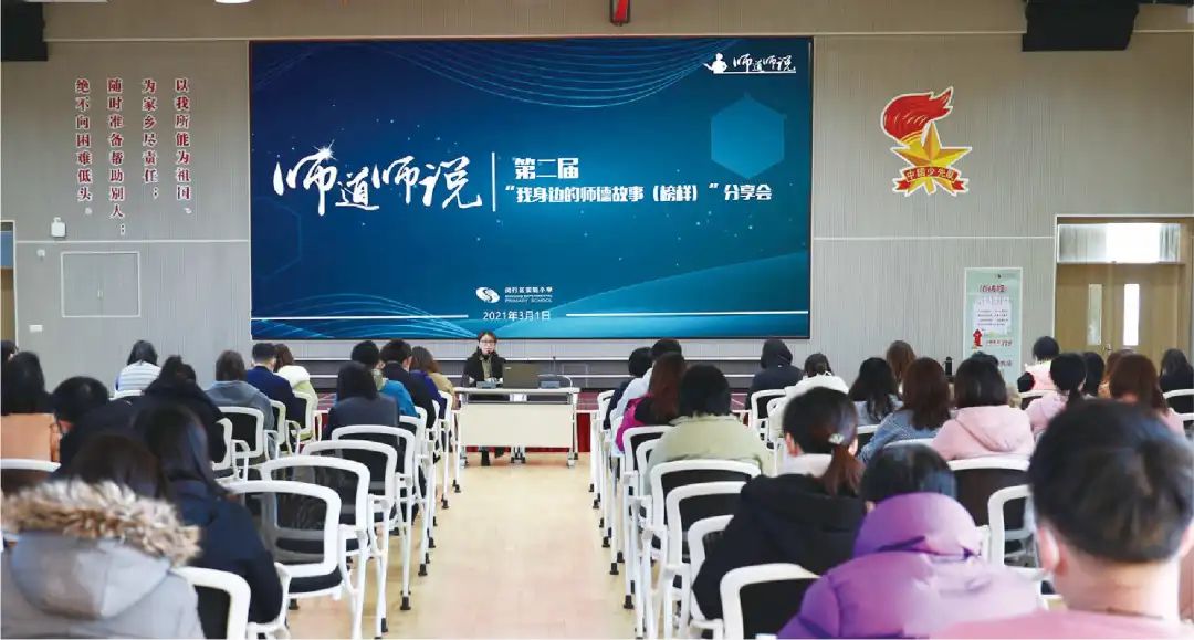 闵行区实验小学“师道师说——我身边的师德故事(榜样)”分享会在四校区同步举行。全校教职员工分为33个小组,以座谈的方式进行师德故事(榜样)分享与交流