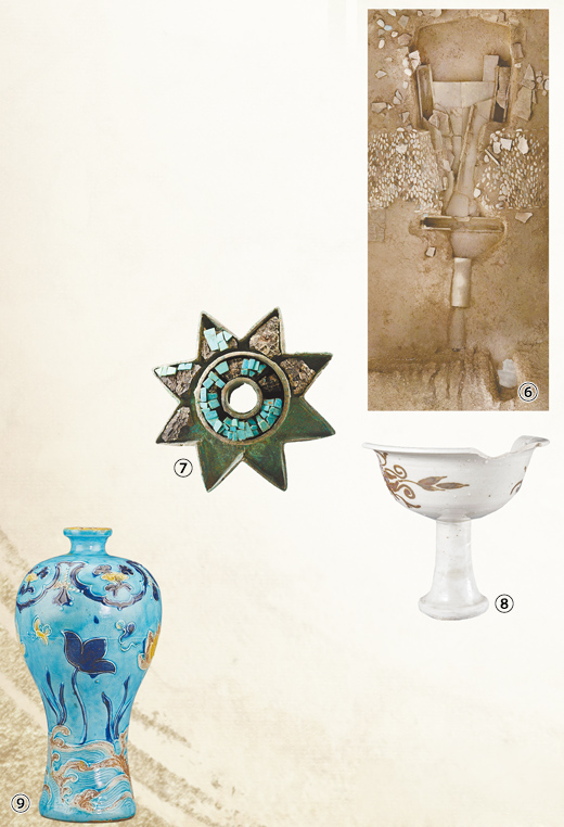 图⑨:南海西北陆坡一号、二号沉船遗址出水的珐华彩莲纹梅瓶。