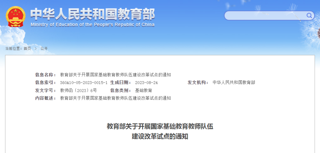 记者8月29日从教育部获悉,教育部近日印发《教育部关于开展国家基础教育教师队伍建设改革试点的通知》,部署在上海市、山东省、青海省、福建省厦门市、湖南省常德市、黑龙江省黑河市嫩江市、浙江省温州市瓯海区、河南省商丘市永城市、广西壮族自治区桂林市荔浦市、重庆市云阳县等省、市、县10个地区开展国家基础教育教师队伍建设改革试点。试点时间自通知印发之日起计算,周期3年。