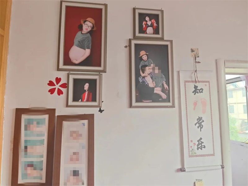 崔小妮怀二女儿时和丈夫、孩子拍的照片。
