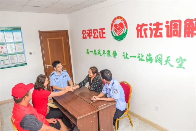 王铁映为群众化解纠纷。通化边境管理支队供图