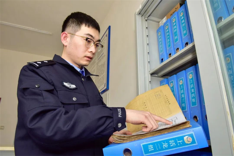 王铁映查看辖区人口信息底卡。通化边境管理支队供图