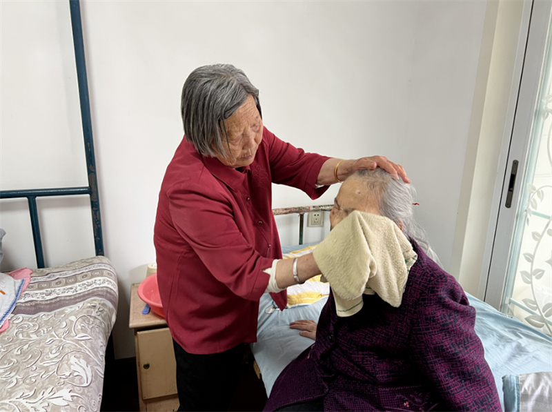 沈桂华为姐姐擦脸。图片由南京市江北新区文明办提供