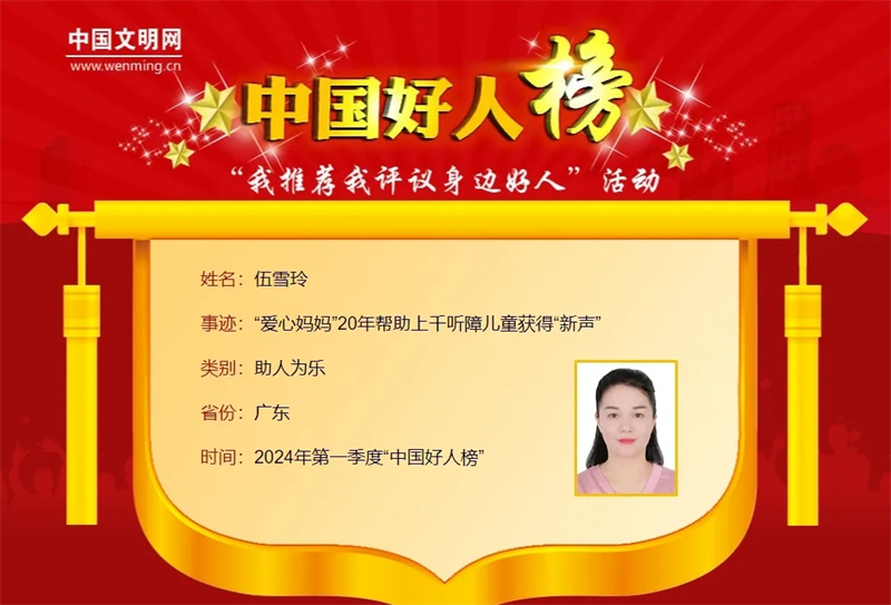 多年来,伍雪玲带领团队系统、科学地为孩子进行专业的听力、言语康复训练,共服务听障儿童1800多名,帮助他们重新进入有声世界;筹集善款350多万元、各类物资10000余件,全部定向补贴给特殊儿童困难家庭。