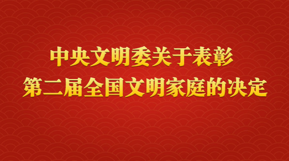 为全面展示精神文明建设丰硕成果,激发各地区各部门参与精神文明建设积极性、主动性、创造性,按照从严把关、确保质量的原则,经过严格规范评选,中央文明委决定,授予钱蕾家庭等499户家庭全国文明家庭称号。
