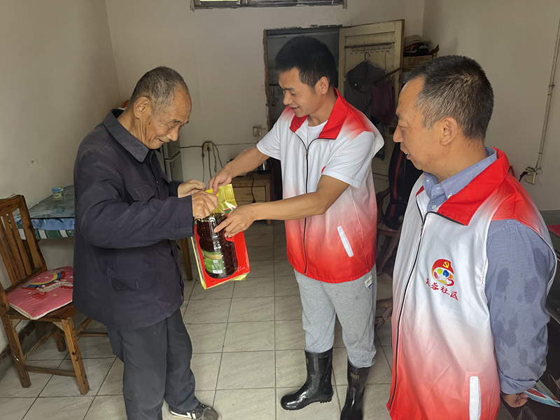 池州市九华山风景区九华镇新时代文明实践所密切关注辖区独居老人汛期安全,组织志愿者每日上门走访,掌握老人身体状况。