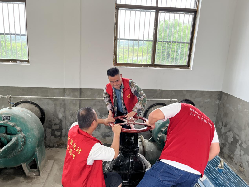 休宁县源芳乡新时代文明实践所志愿者在疏通路面。