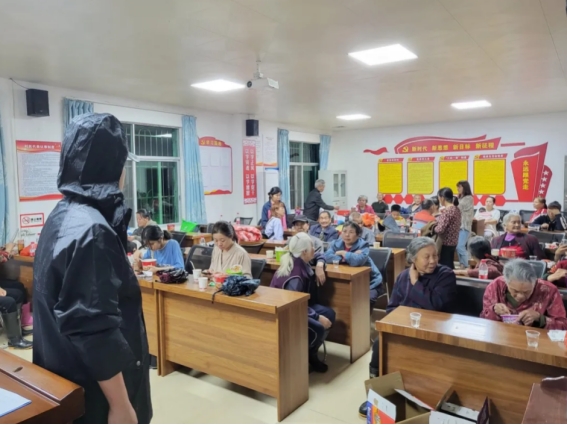 韶关市仁化县受灾群众在新时代文明实践所讲堂内休息。