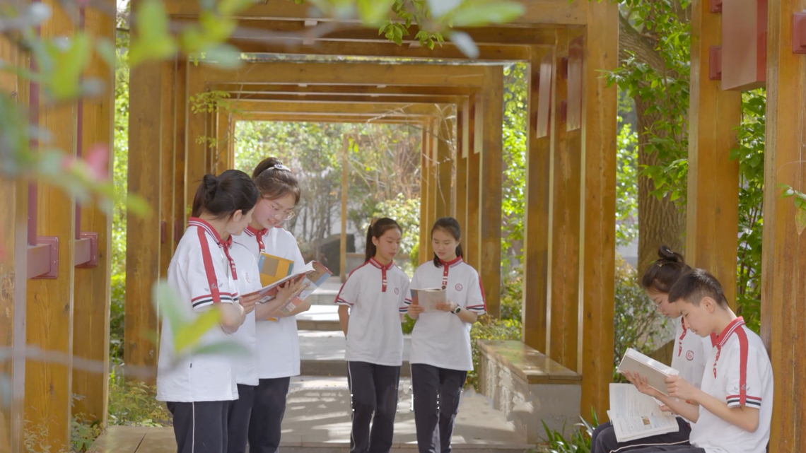 “全国文明校园”泸州市第一中学校的学生在beplay官网app 长廊读书学习。
