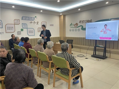 同样开展健康养生讲座的还有汤浜社区,活动邀请相城中医院副院长于吉超为老年居民详细阐述秋冬季节中医养生的要领和技巧。在此基础上,汤浜社区还结合老年居民身体情况,邀请行业相关志愿者从热身运动、力量训练和平衡训练着手,指导老年居民进行体育锻炼,全面提升老年人的身体协调性和稳定性,减少跌倒风险。