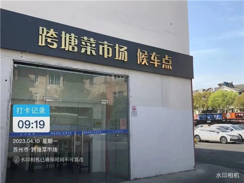 园区跨塘菜市场为市民设置公交候车点。