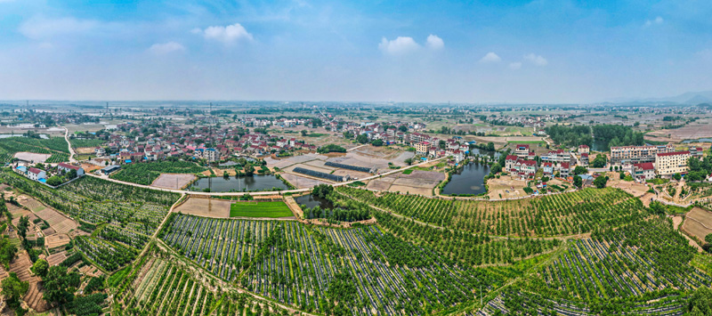 郊区周潭镇永兴村,整洁的村庄与稻田、果林相映,构成一幅美丽的生态画卷。陈磊 摄