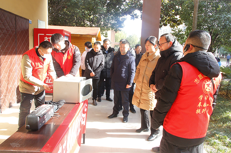 现场观摩五松镇天馨花园小区文明实践志愿服务网格化工作