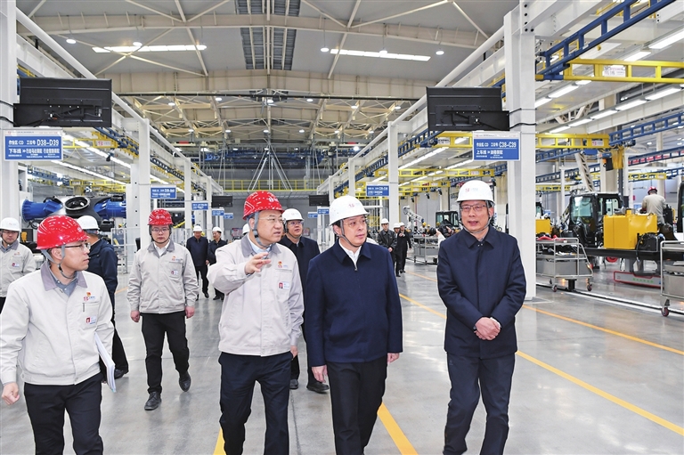 太重智能高端液压挖掘机产业园区运用行业领先的制造技术,致力于生产全系列多动能液压挖掘机产品。在展示中心,韦韬认真听取企业产品种类、服务领域、技术优势等介绍,观看新能源挖掘机、装载机等产品展示,详细了解产品性能和生产销售情况,走进联合厂房,沿智慧产线察看装配调试流程。他强调,太重是太原工业的标志,要充分发挥表率作用,加大科技创新力度,提升智能制造水平,深挖国内市场增长潜力,积极拓展海外市场,加快形成发展新优势。