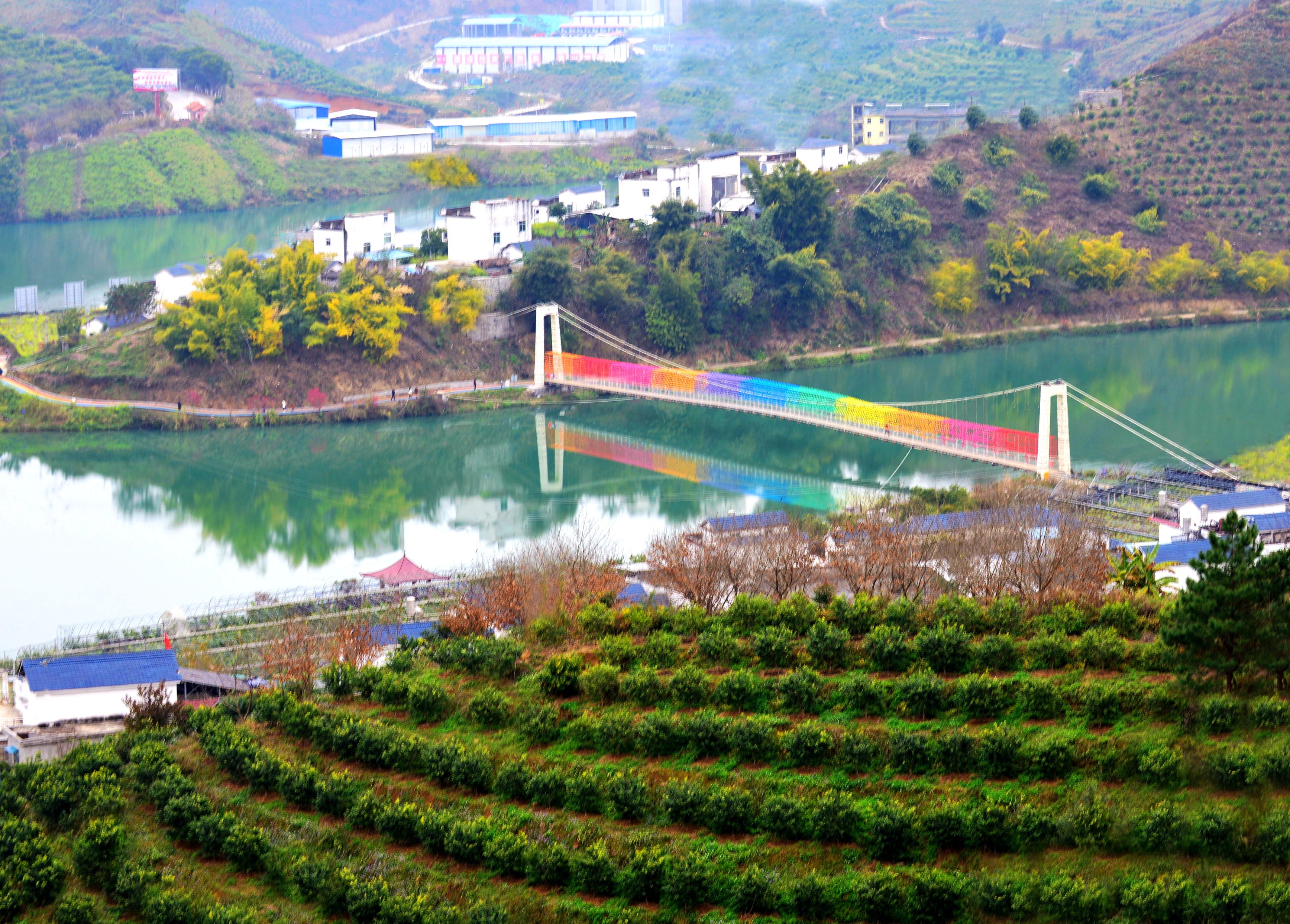 新丰村彩色风车桥。