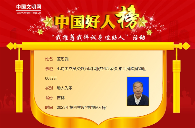 范恩武入选“中国好人榜”