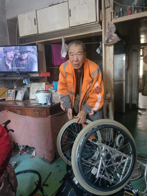 范恩武帮助社区居民修轮椅。图片由宽城区委宣传部提供