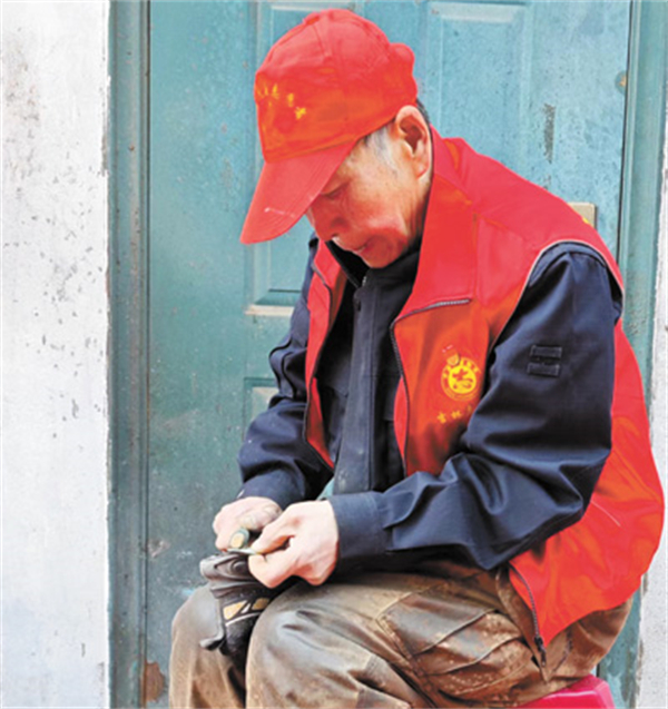 范恩武在为居民义务修鞋。人民日报记者 门杰伟摄