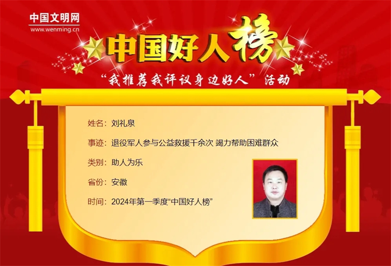 刘礼泉荣登“中国好人榜”