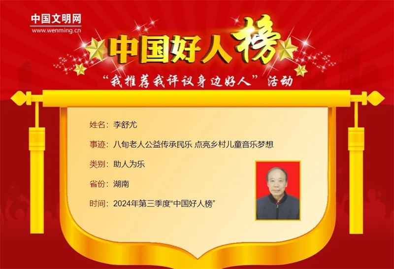 李舒尤荣登“中国好人榜”