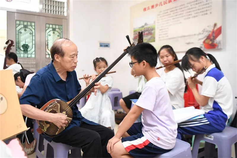 打造出这场“约会”的李舒尤老人,用他的公益音乐课堂,让200余名曾经不识乐谱、不懂民乐的孩子,学会了琵琶、二胡、柳琴、三弦、阮、笙等传统民族乐器。
