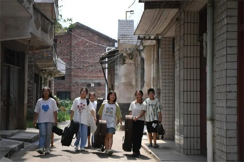 起初,人们把乐坊当成托育所,送孩子来只因“在这里待着有人管,也不收费”。一段时间后,家长们欣喜地发现孩子真会乐器了,枧头洲村音乐课堂的名气越来越大。
