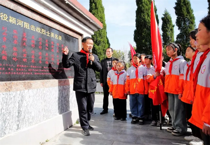 “捐建纪念碑不是目的,让英烈英名传播四方、流芳百世、教育后人才是目的。”16年来,陈广安作为义务讲解员,累计接待10多万人次。他还自费编印了《颍河阻击战宣传手册》传颂英烈精神。在他的宣传和守护下,颍河阻击战烈士纪念碑成了远近闻名的青少年爱国主义教育基地。