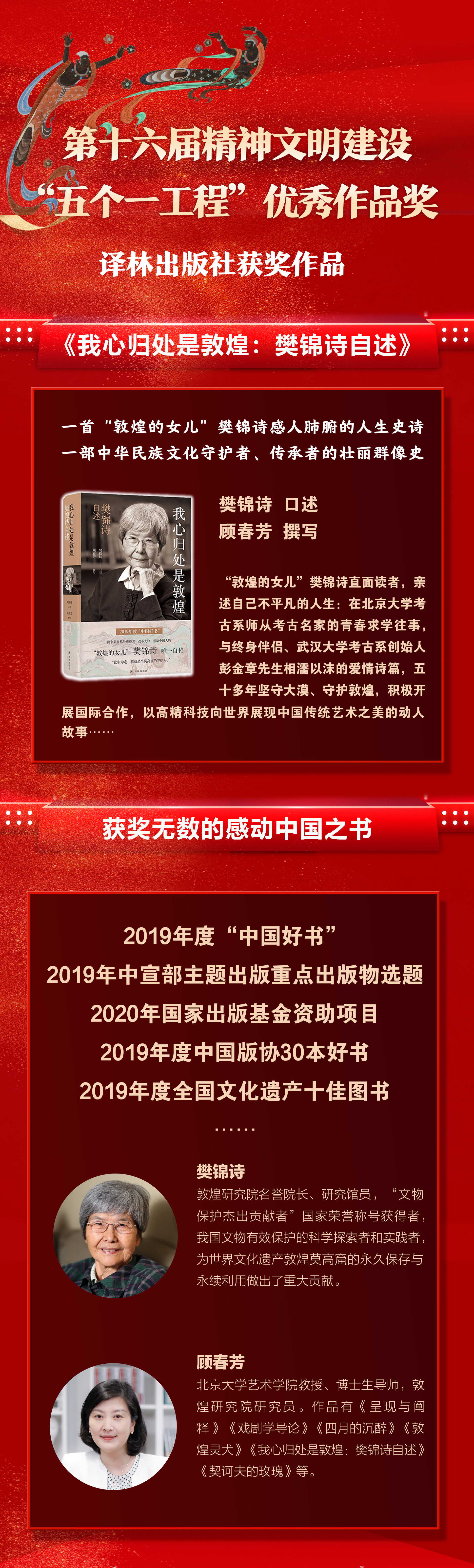 本书是“文物保护杰出贡献者”国家荣誉称号获得者樊锦诗的自传。在这本自述中,樊锦诗娓娓道来,带领读者领略了敦煌石窟壁画的精美绝伦,解读了敦煌beplay官网app 的博大精深,向大家讲述了莫高窟人面对残破不堪的洞窟的担当有为,以及敦煌文物考古和研究过程中发生的诸多感人至深的故事。(供稿:中宣部文艺局)