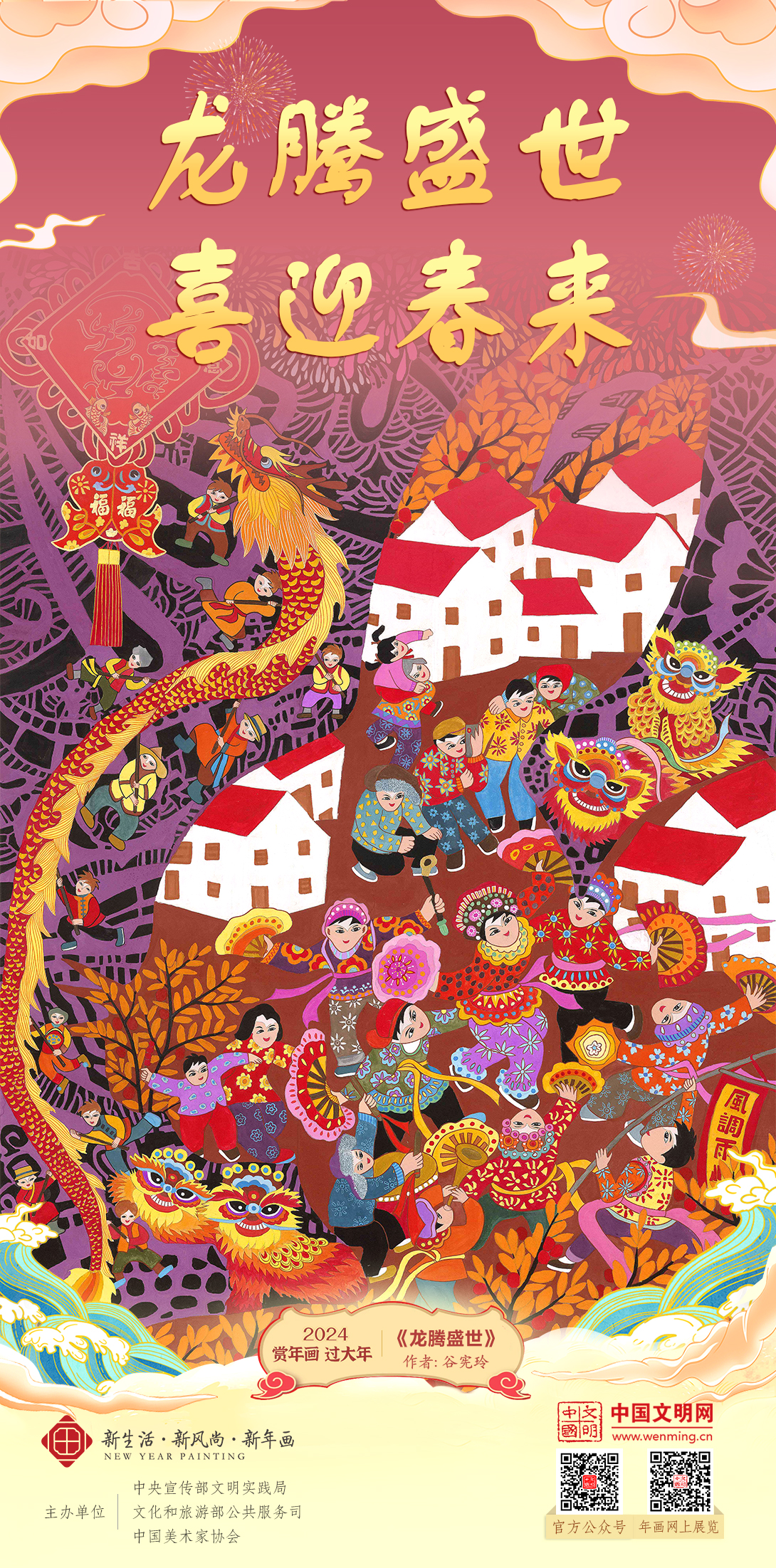 “赏年画·过大年”,一幅幅饱含温度、鲜活生动的新年画,带你重温记忆中的年味儿。精彩的新年画创作展示活动,邀你同沐文明祥和的节日氛围。新的一年里,祝你龙腾盛世,喜迎春来。