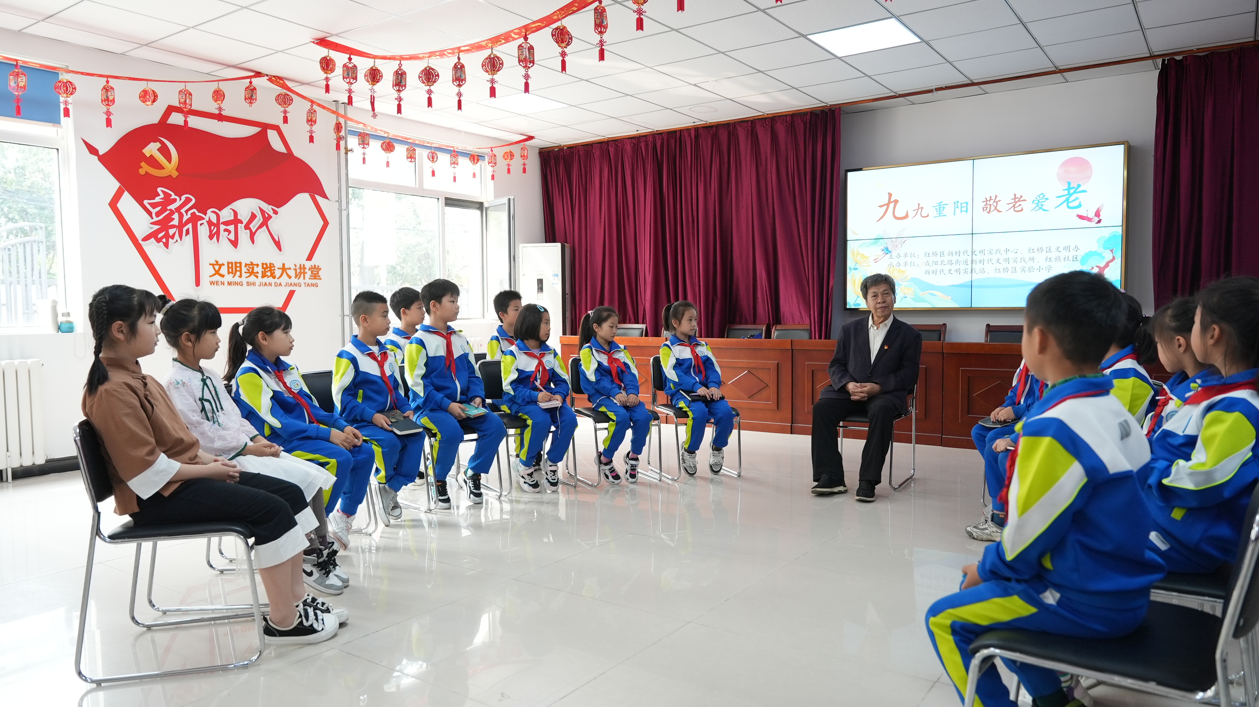 天津市红桥区咸阳北路街道新时代文明实践所开展“我们的节日·重阳”家风故事分享会。邀请“中国好人”赵永华为孩子们讲述孝老爱亲故事,引导孩子们将中华孝道根植于心中,渗透在生活的点滴细微之中,将中华美德传承下去。