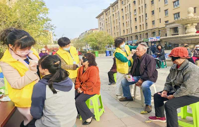 新疆乌鲁木齐高新区(新市区)永泰社区新时代文明实践站开展“情满永泰 爱在重阳”重阳节活动,医务工作者为老年人提供视力检查、眼部按摩护理等服务,普及老年眼病预防治知识,为老年人提供更多日常关爱和服务。