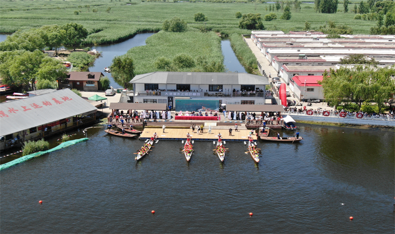 河北省雄安新区安新县新时代文明实践中心与端村镇新时代文明实践所组织开展“龙舟竞渡 喜迎端午”水上运动嘉年华活动,4支代表队在大淀头村游客中心码头劈波斩浪,传承龙舟beplay官网app ,欢度端午佳节。