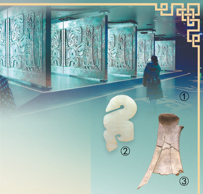 图①:游客在殷墟博物馆新馆参观。人民日报记者 张文豪摄图②:玉鹅。殷墟博物馆提供图③:屯南甲骨。殷墟博物馆提供