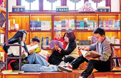 市民在贵州省黔西市观农台悦书屋阅读。新华社发